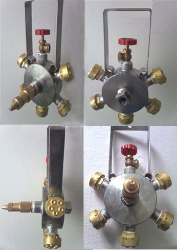 除塵凈化水幕,它由供水管、導水管和幾個可拆洗五孔(三孔)噴頭組成,噴頭均勻分布并固定連接在主體的一側,噴頭的內(nèi)部有一旋流腔,旋流腔的下部為噴嘴,上部有噴頭蓋,噴頭的側壁上沿其切線方向有一與導水管互通的孔。本裝置噴頭采用無芯切向進水預旋出流技術,霧化效果好,擴散角度大,且不容易因堵塞出水孔而影響整體凈化水幕裝置的使用效果,可拆洗五孔(三孔)噴頭比傳統(tǒng)采用整體焊接固定連接的三孔噴頭霧化效果更好,傳統(tǒng)的整體焊接噴頭容易引起堵塞無法清洗,而可拆洗五孔(三孔)噴頭就避免了這一弊端,延長了使用期限。