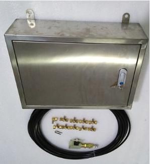 裝置有細(xì)水噴霧降塵裝置主控箱、球形截止閥、細(xì)水霧化噴頭組件、高壓膠管組成